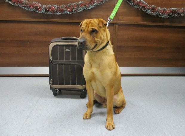 Cachorro da raça Shar Pei tinha sido deixado em estação ferroviária.