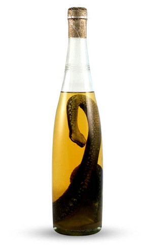 Bebidas alcoólicas contendo cobras preservadas são consumidas devido a supostas propriedades medicinais do produto.