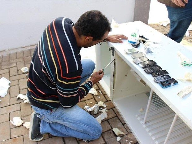 “Bati na porta da geladeira e ela não estava oca. Desconfiei. Verificamos e, depois de muito trabalho, conseguimos achar a droga e os celulares embaixo da borracha. O serviço estava muito bem feito, com certeza foi feito por um profissional que mexe com eletrodomésticos”, relata.