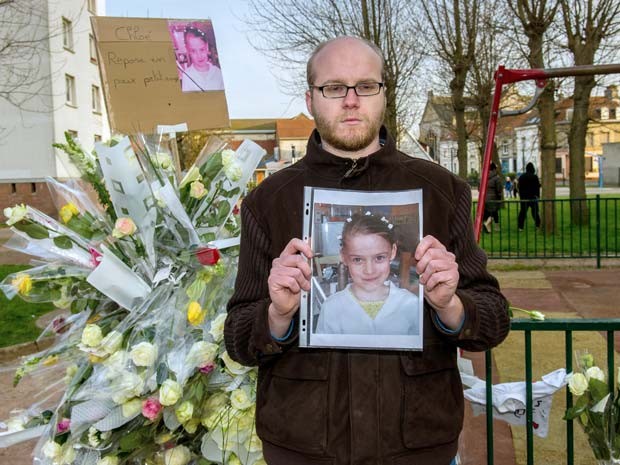 Homem segura foto de Cloé, menina de 9 anos que foi sequestrada e morta na França, diante de memorial à garota em playground de Calais (Foto: FP PHOTO / PHILIPPE HUGUEN)Uma menina de nove anos foi sequestrada, estuprada e assassinada no norte da França um drama que gerou forte comoção nesta quinta-feira (16). O suposto autor é um homem polonês, que retornou ao país depois de ter sido expulso.
