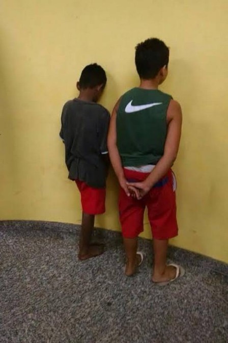 A foto em que as crianças aparecem de costas, feita na delegacia, foi divulgada pela própria Polícia Militar. A delegada Kelly Goularte disse que não sabia a respeito da imagem e frisou que não autoriza fotos de pessoas detidas, sejam menores ou maiores de idade.