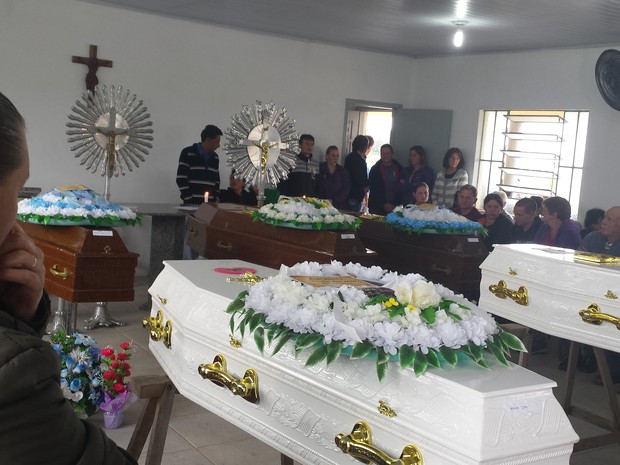 O velório de casal Antônio Narciso Dias, de 52 anos, e Maria Janete Gomes Dias, de 45, foi junto com os filhos, Janaína Dias, de 11 anos, Kauan Dias, de 8, e do sobrinho Diego Krumenauer, de 18 anos, na capela municipal. A outra vítima é José Eli da Silva Coimbra, de 42 anos, amigo da família. Ele foi enterrado no interior do município.