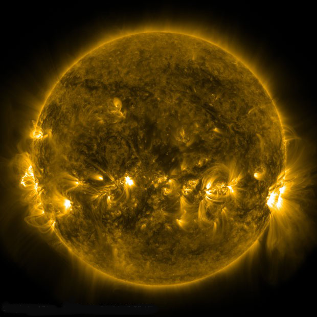 A Nasa divulgou nesta terça-feira (31) uma imagem do Sol feita pelo Observatório de Dinâmica Solar (SDO, na sigla em inglês), um satélite que fica na órbita da Terra. A foto foi feita com um instrumento chamado AIA, cuja função é estudar a coroa solar, a camada mais externa do Sol, onde ocorrem as erupções solares.