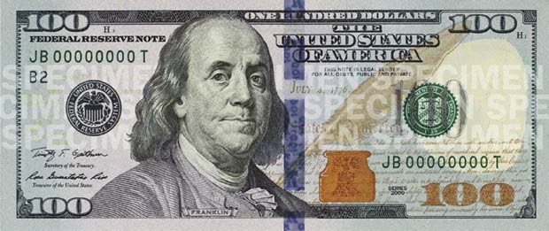 Nas novas notas serão mantidos outros distintivos de segurança que já estão presentes nas atuais, como a imagem “oculta” de Franklin que está à direita do retrato principal, um fio que aperece em cor rosa com a luz ultravioleta e o número 100 em uma das bordas que muda de cobre para verde.