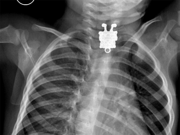 Raio-X mostrou pingente de Bob Esponja no esôfago de garoto de 1 ano (Foto: Cortesia/Ghofran Ageely/Radiopaedia.org)