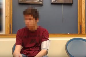 Ele garante ter 50 anos de idade, mas, por conta de uma droga rejuvenescedora, aparenta ter 25. Embora a máquina do teste não possa ser vista, uma mensagem na tela com o texto “Verdadeiro” apareceu quando ele respondeu afirmativamente à pergunta: “Você é viajante do tempo do ano 2030?”
